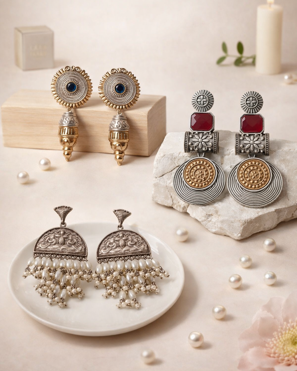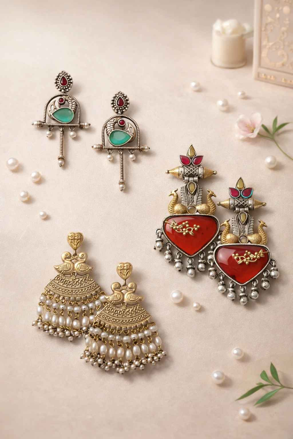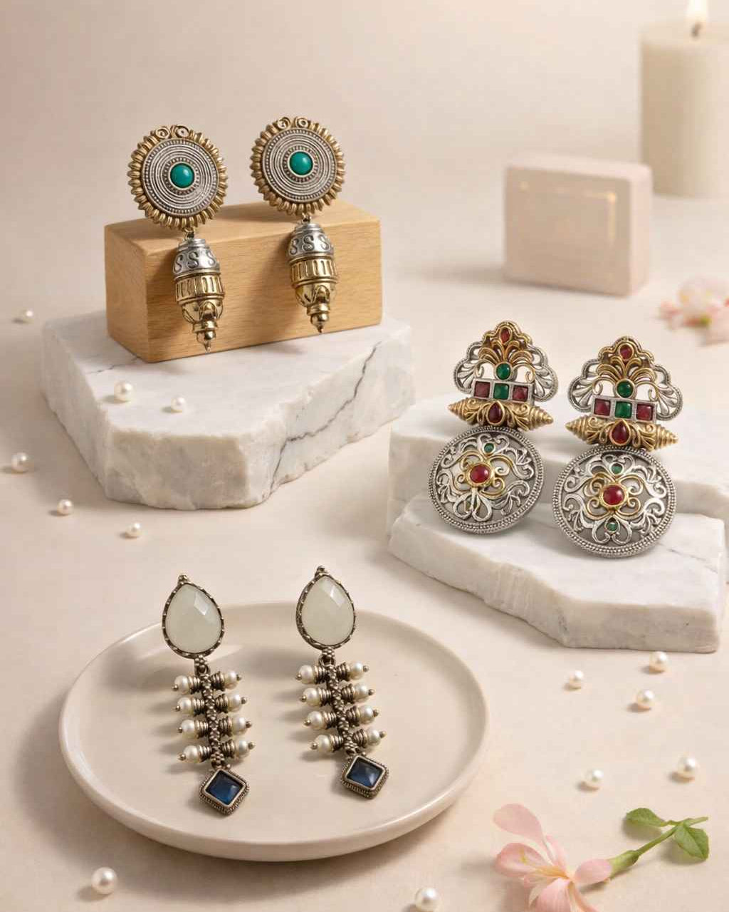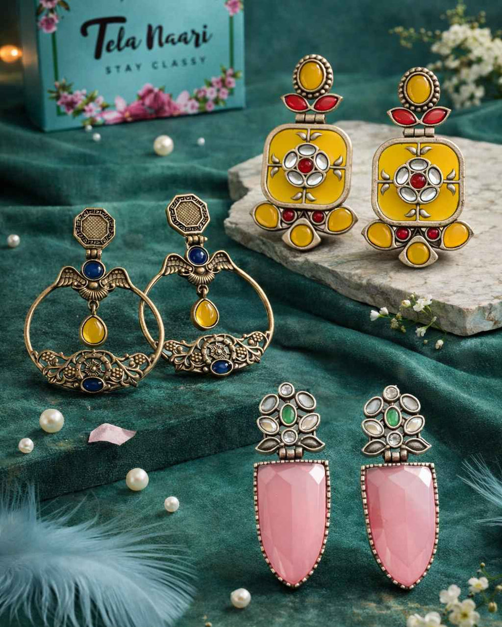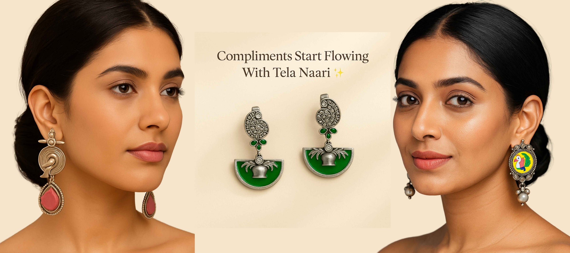 From antique jhumkis and oxidised chandbalis to statement necklaces and pearl danglers, every piece tells a story of grace and individuality. Whether you're dressing up for a wedding, a festive occasion, or an everyday look, Tela Naari ensures you shine effortlessly.