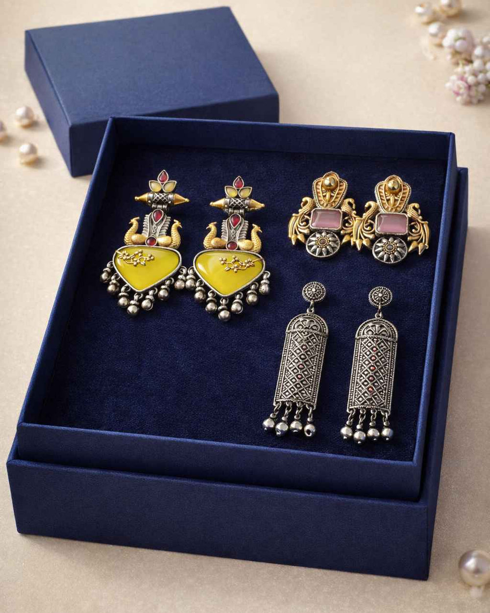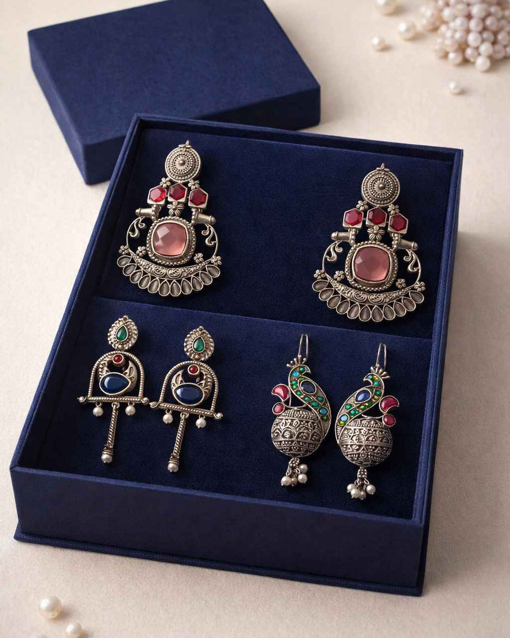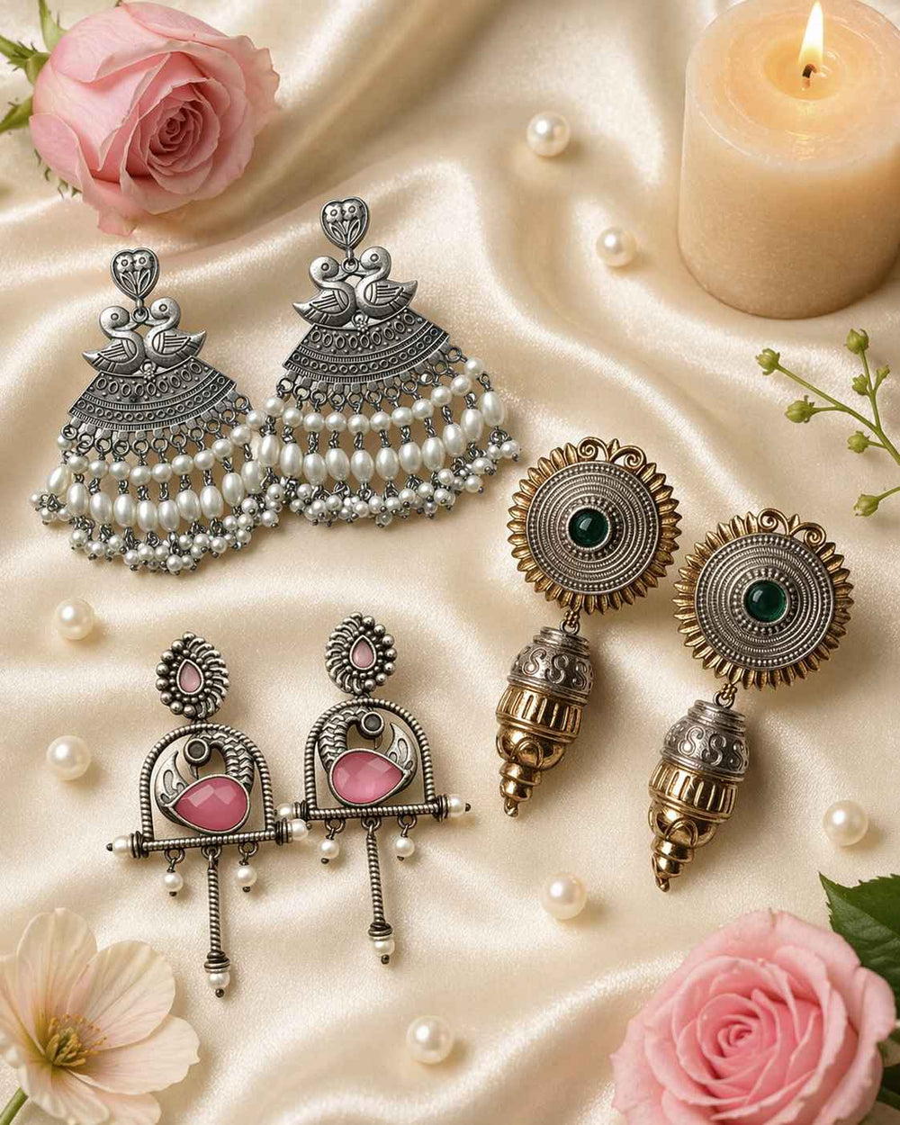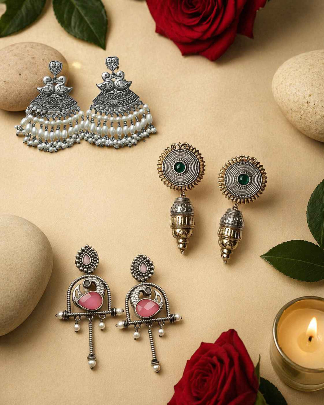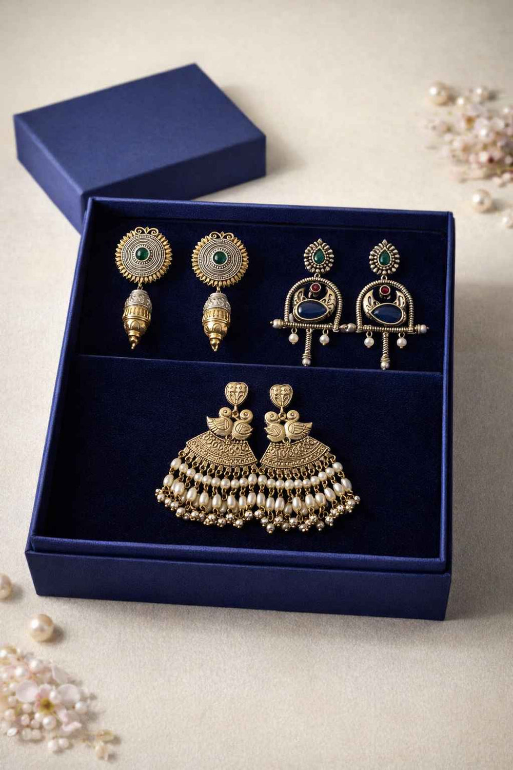 From antique jhumkis and oxidised chandbalis to statement necklaces and pearl danglers, every piece tells a story of grace and individuality. Whether you're dressing up for a wedding, a festive occasion, or an everyday look, Tela Naari ensures you shine effortlessly.