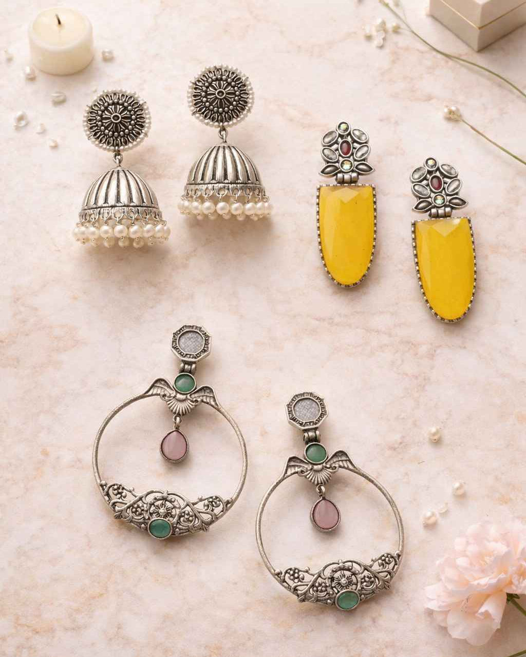 Dual Tone Gilded Arc Ane Red Statement Earrings
