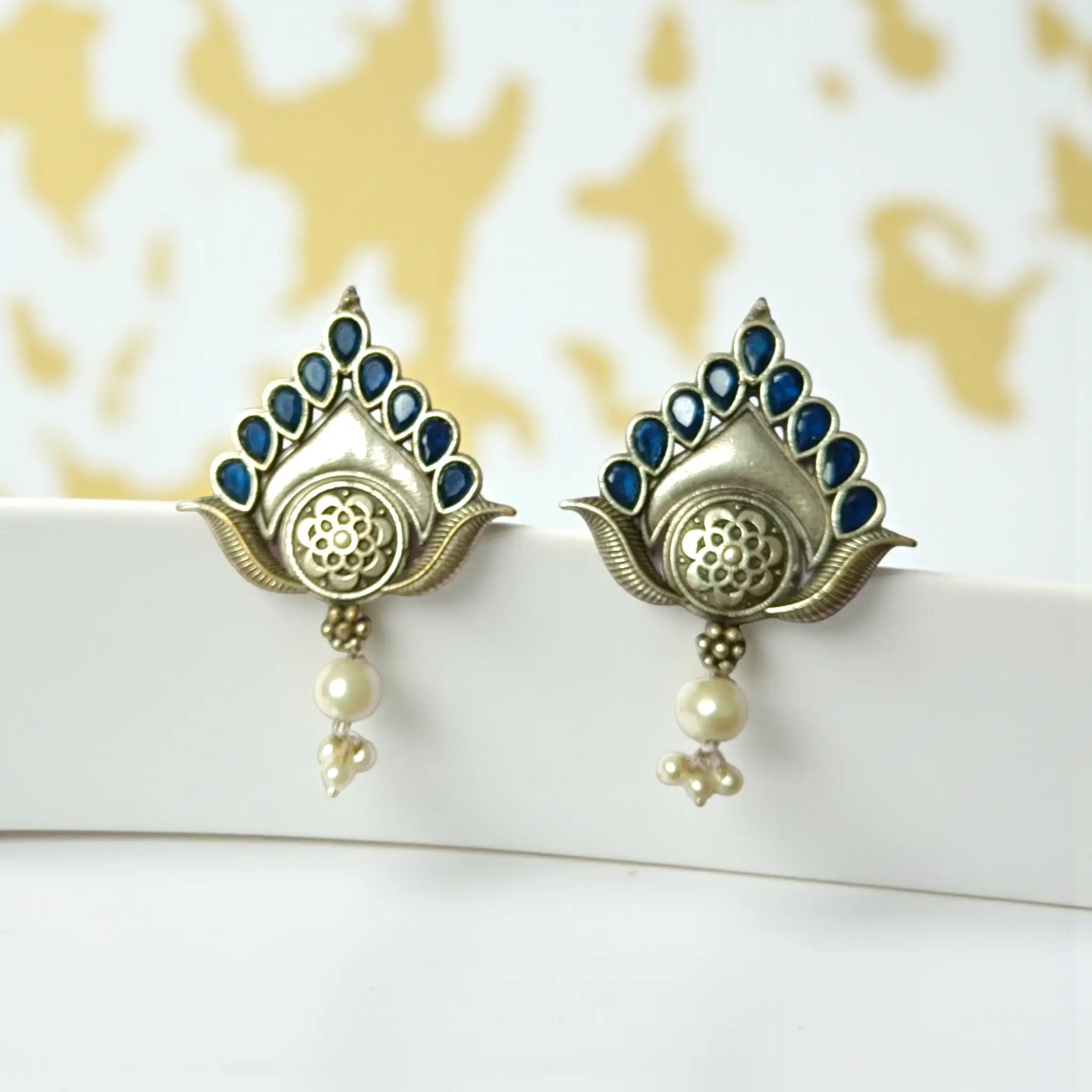 Experience the beauty of Onam with our SILVER LOOK ALIKE EARRINGS LILY. Featuring intricate designs inspired by traditional Kerala jewelry, these earrings add a touch of elegance to your Onam celebrations. Pair them with your Kasavu saree for a classic and cultural look. Celebrate the harvest festival in style with these exquisite earrings.