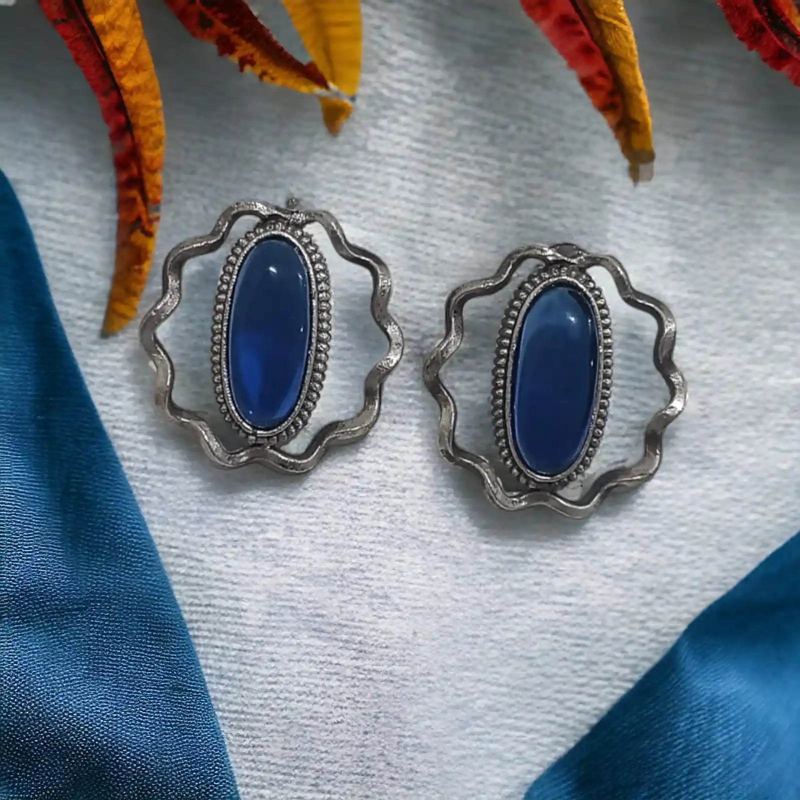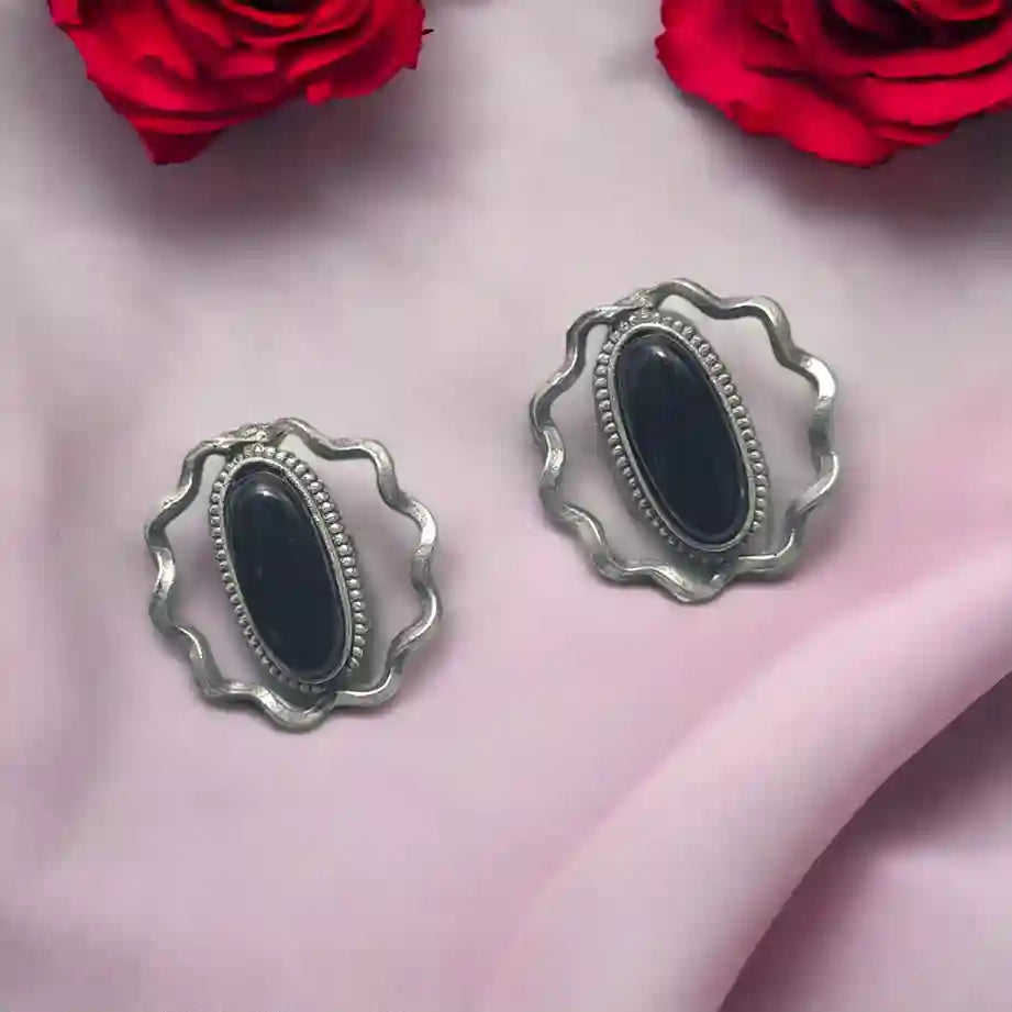 Silver Oxidised Earrings Mushkan - TelaNaari