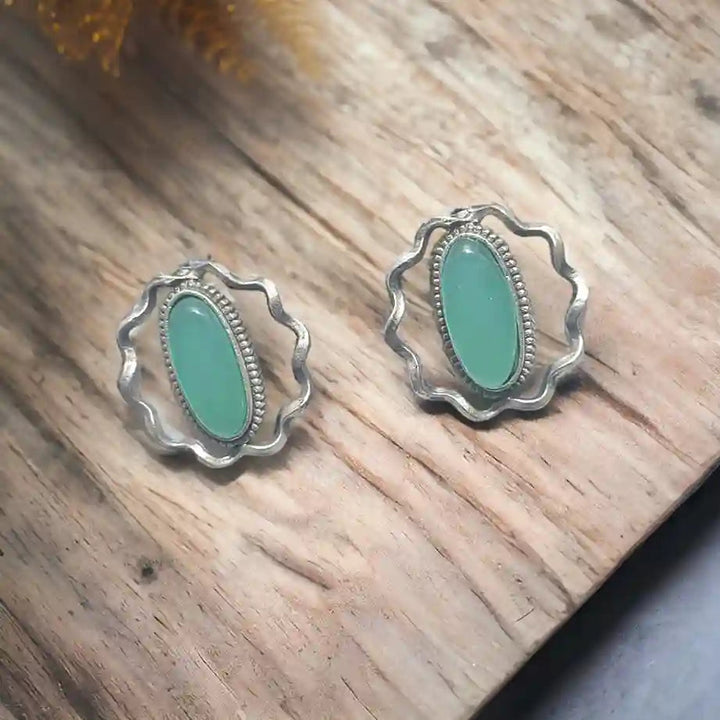 • Material: Brass with a Silver look Alike Polish, Stone, Glass Beads
