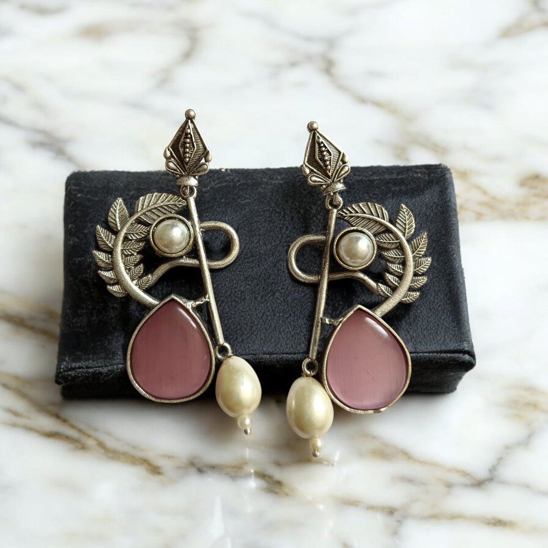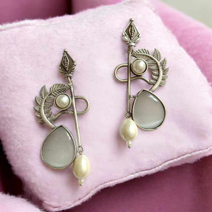 Timeless Elegance Aanya Silver Oxidised Pearl Earrings