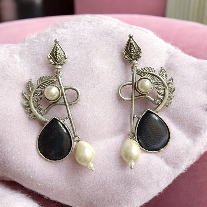 Timeless Elegance Aanya Silver Oxidised Pearl Earrings - TelaNaari
