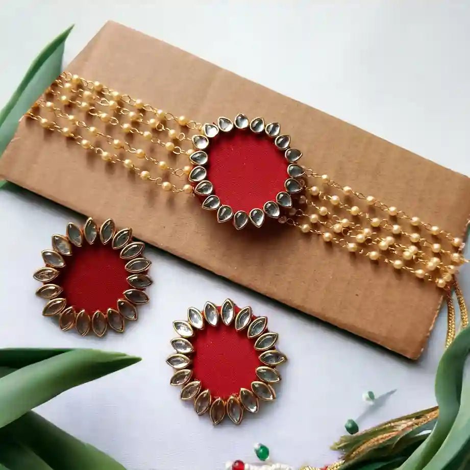 Elevate your look at any festive occasion with our HANDMADE FABRIC CHOKER NECKLACE AND EARRINGS NAVYA MAROON. The whimsical patterns and vibrant colors make these earrings a must-have for Haldi Mehendi functions, while the elegant design adds sophistication to any wedding outfit. Perfect for standing out in a joyful crowd, these handcrafted beauties will keep you comfortable all day long.