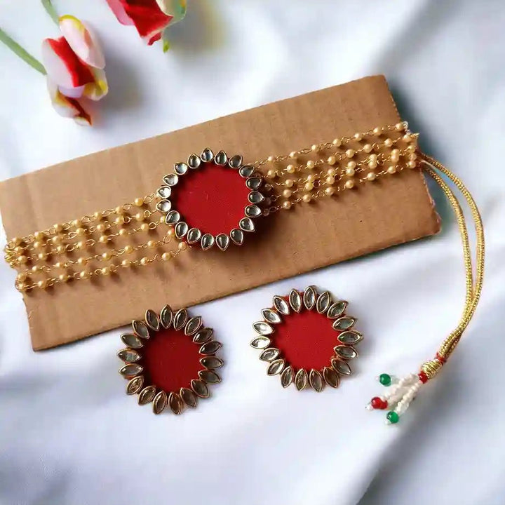 HANDMADE FABRIC CHOKER NECKLACE WITH EARRINGS NAVYA MAROON