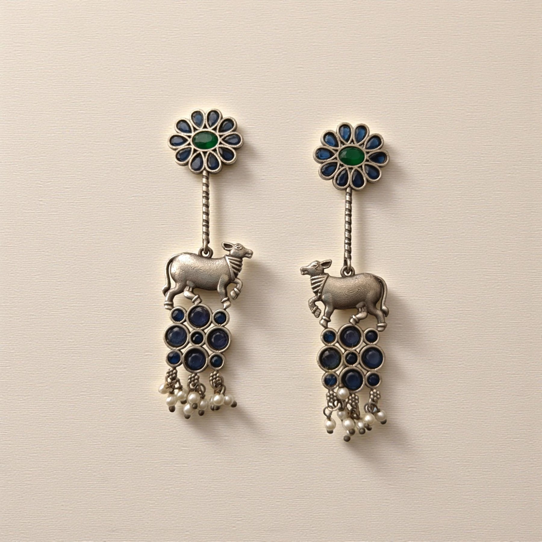 Aashmita Nandi silver oxidised earrings in blue – elegant handcrafted festive jewellery by Tela Naari