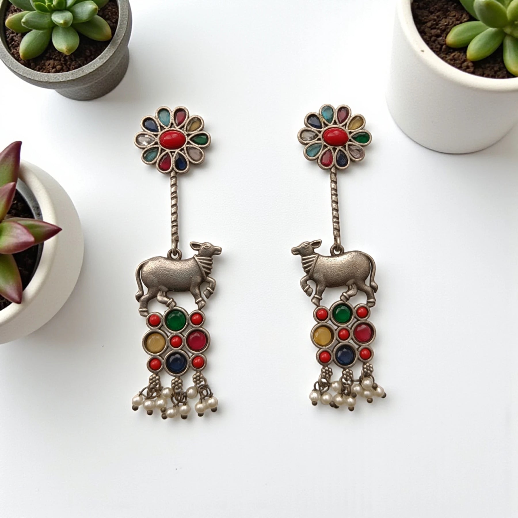 Aashmita Nandi silver oxidised earrings in multicolor – handcrafted ethnic jewellery by Tela Naari