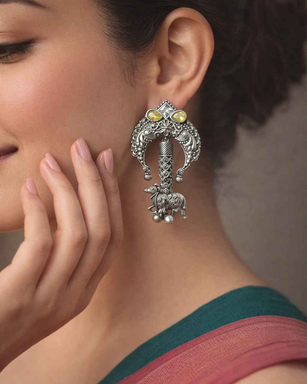 Tela Naari Classic Antique Anandita Dual Tone Silver-Plated Earrings