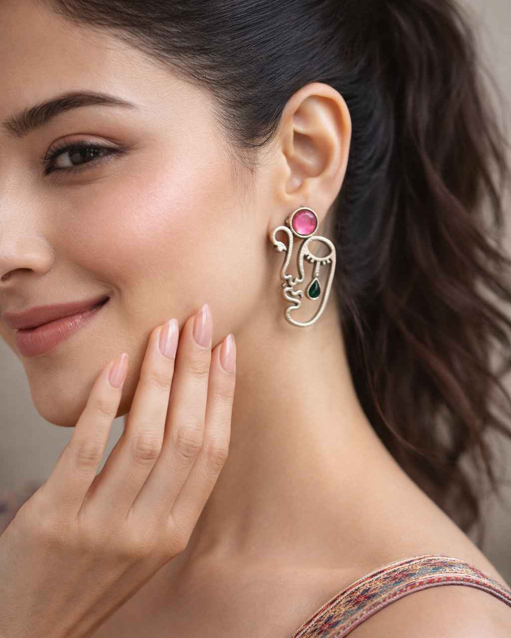 Soft pink face silhouette studs with minimalist design. Lightweight, hypoallergenic, and perfect for everyday elegance.