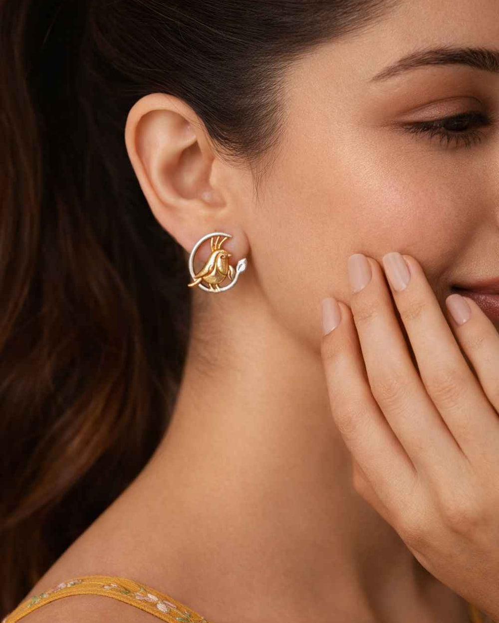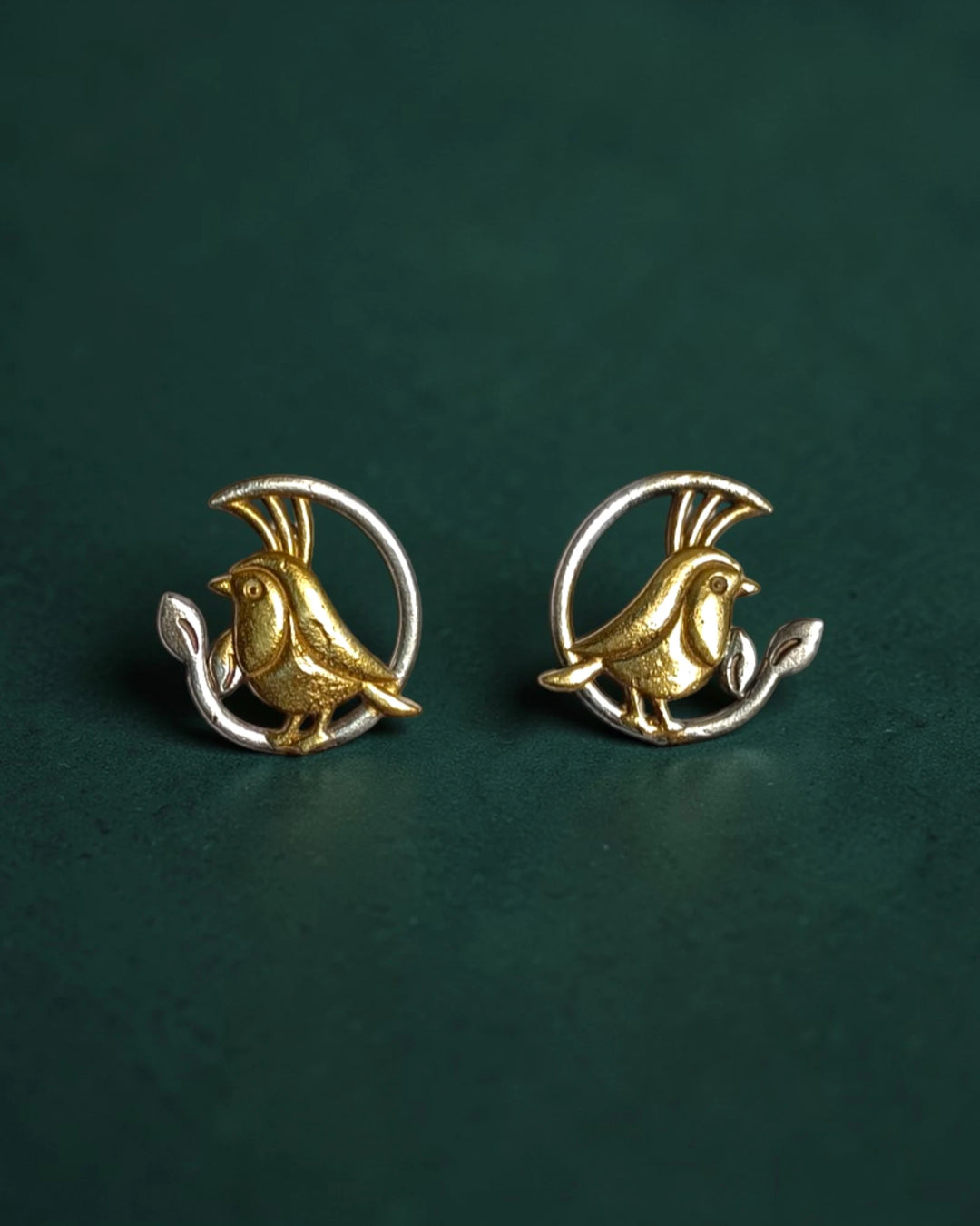 Dual-Tone Sheva Golden Bird Dangle Earrings