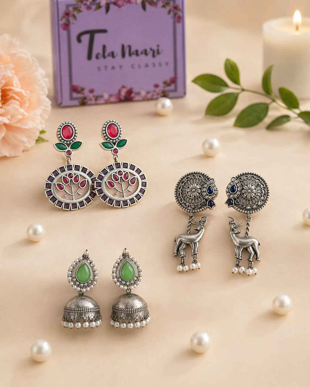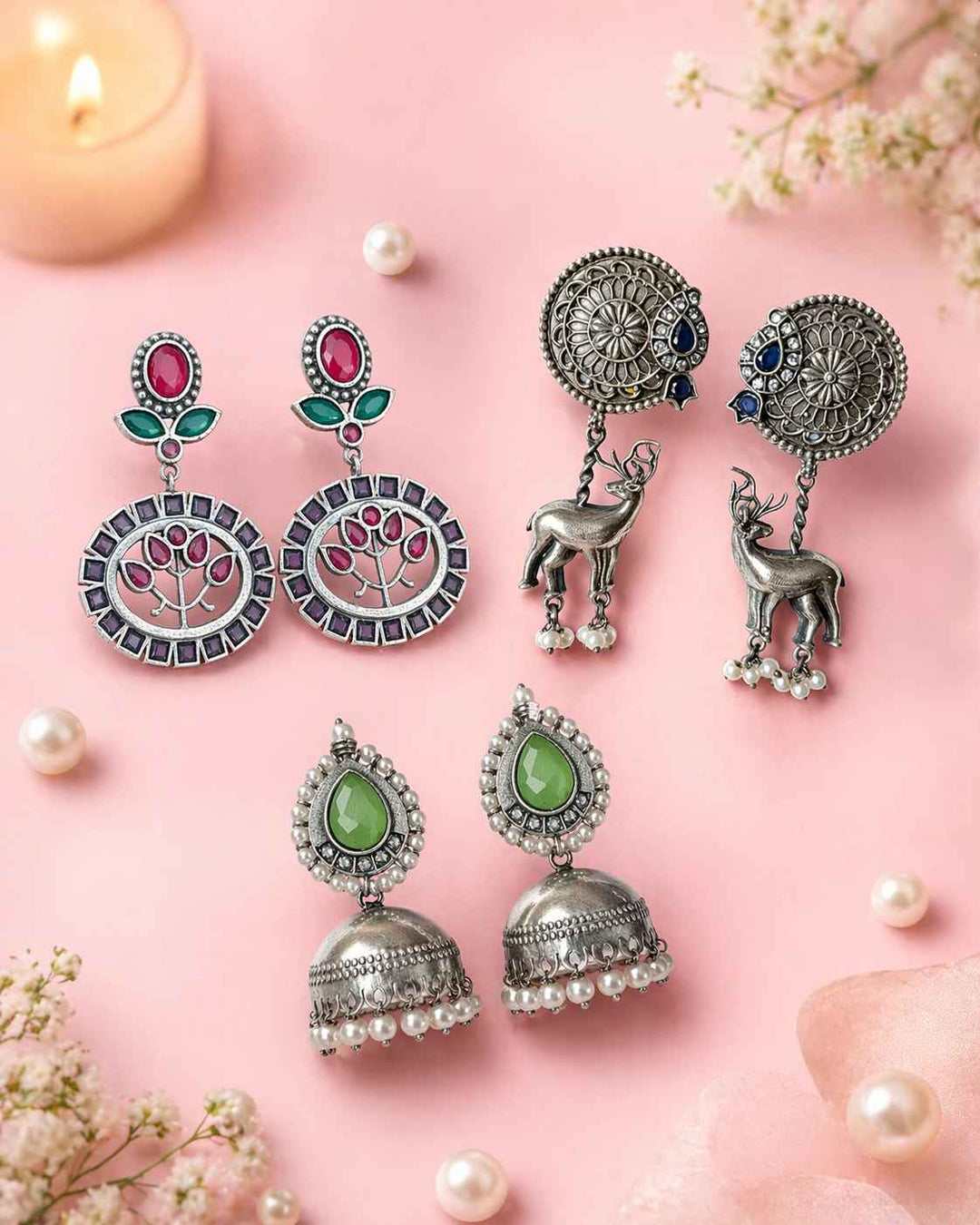 Elegant Antique Laboni Silver Plated Jhumki Earrings