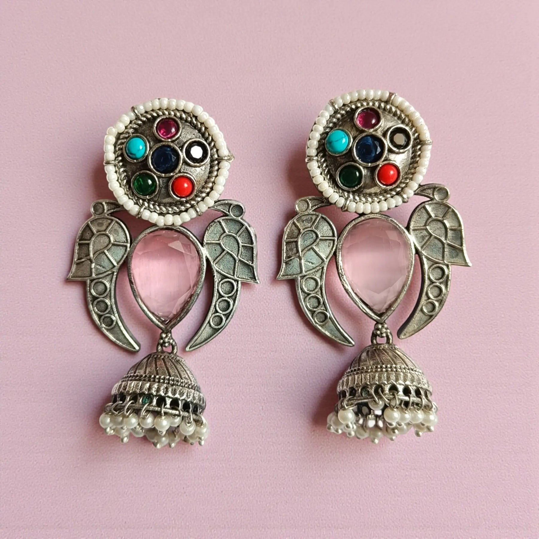 Elegant Antique Laboni Silver Plated Jhumki Earrings