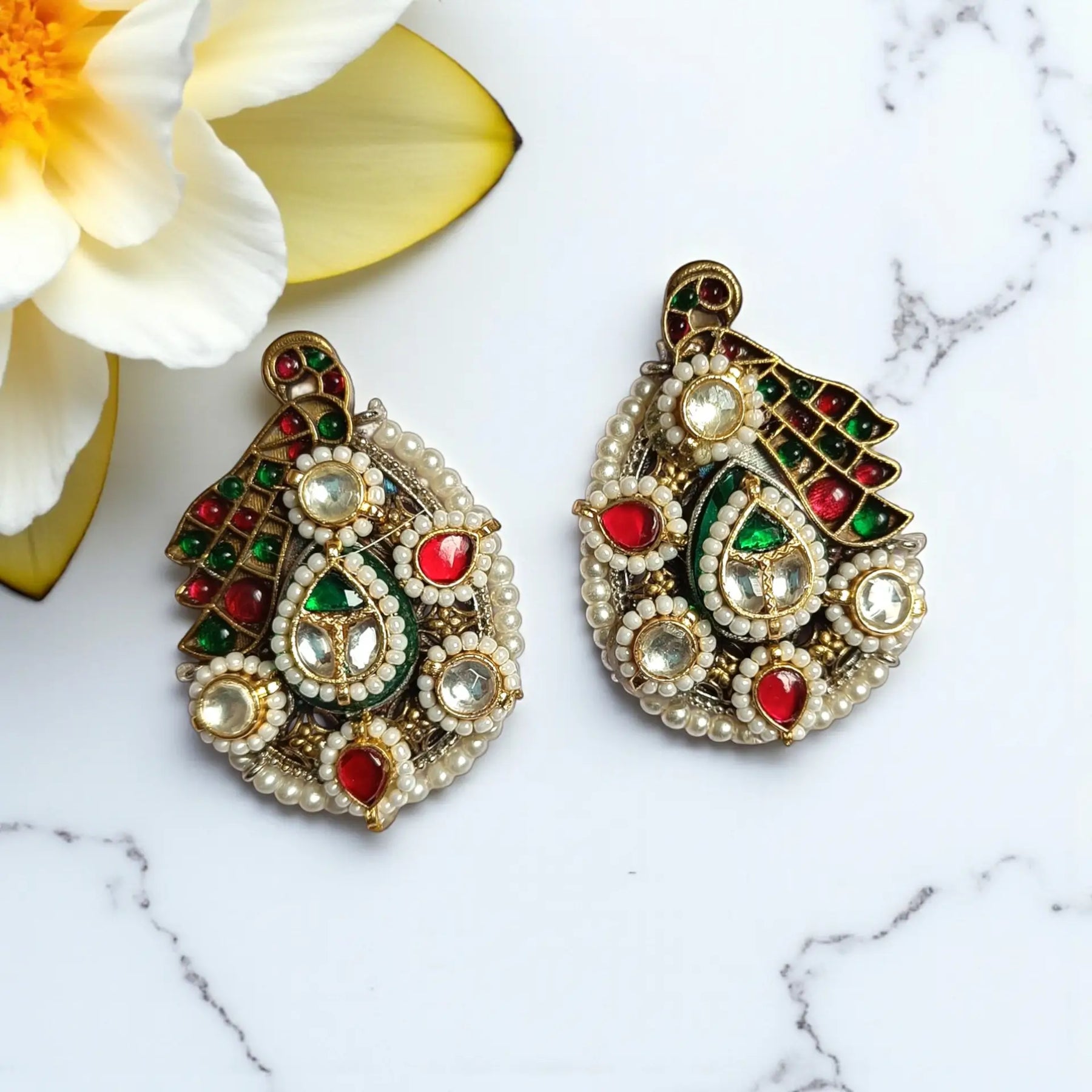 Telanaari Elegant Alka Dual Tone Fushion Pachi Kundan Silver Plated Earrings