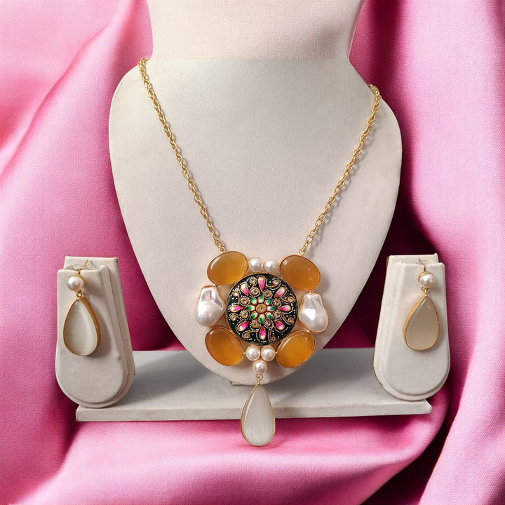 Telanaari Timeless Barminder Yellow Baroque Gold Plated Necklace Set - TelaNaari