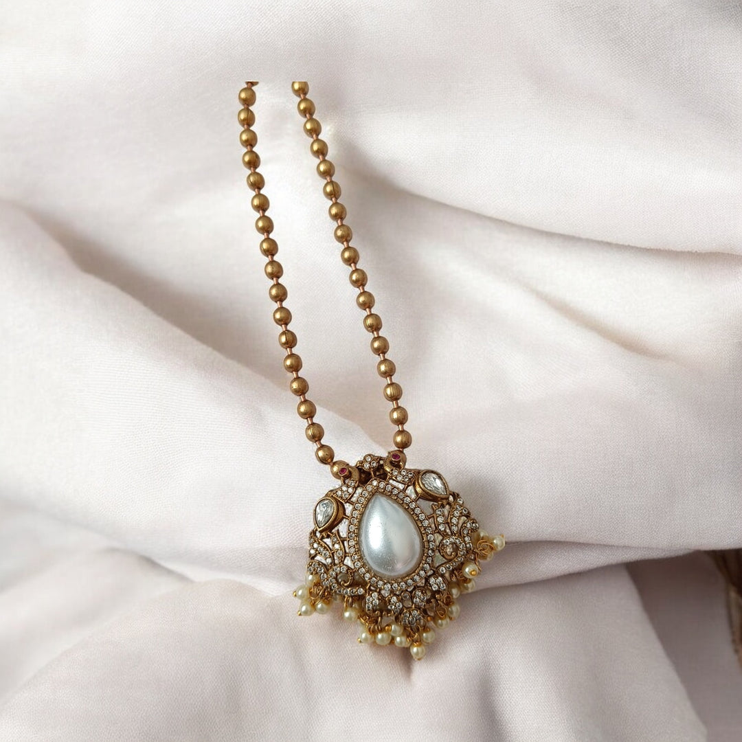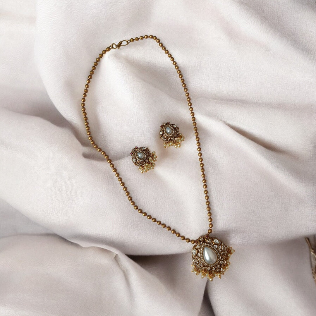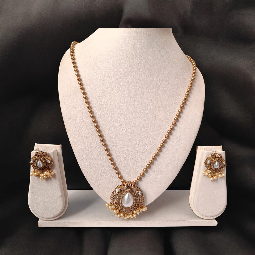 Telanaari Timeless Mehek Pearl Dual Tone Silver-Plated Necklace Set
