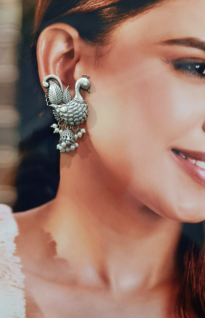 Add a touch of elegance to your everyday look with our TELA NAARI DELICATE SILVER OXIDISED EARRINGS. Lightweight and comfortable, they are perfect for daily wear and can effortlessly complement a variety of outfits. From casual to formal, these versatile earrings are your go-to accessory for an effortless and chic style.