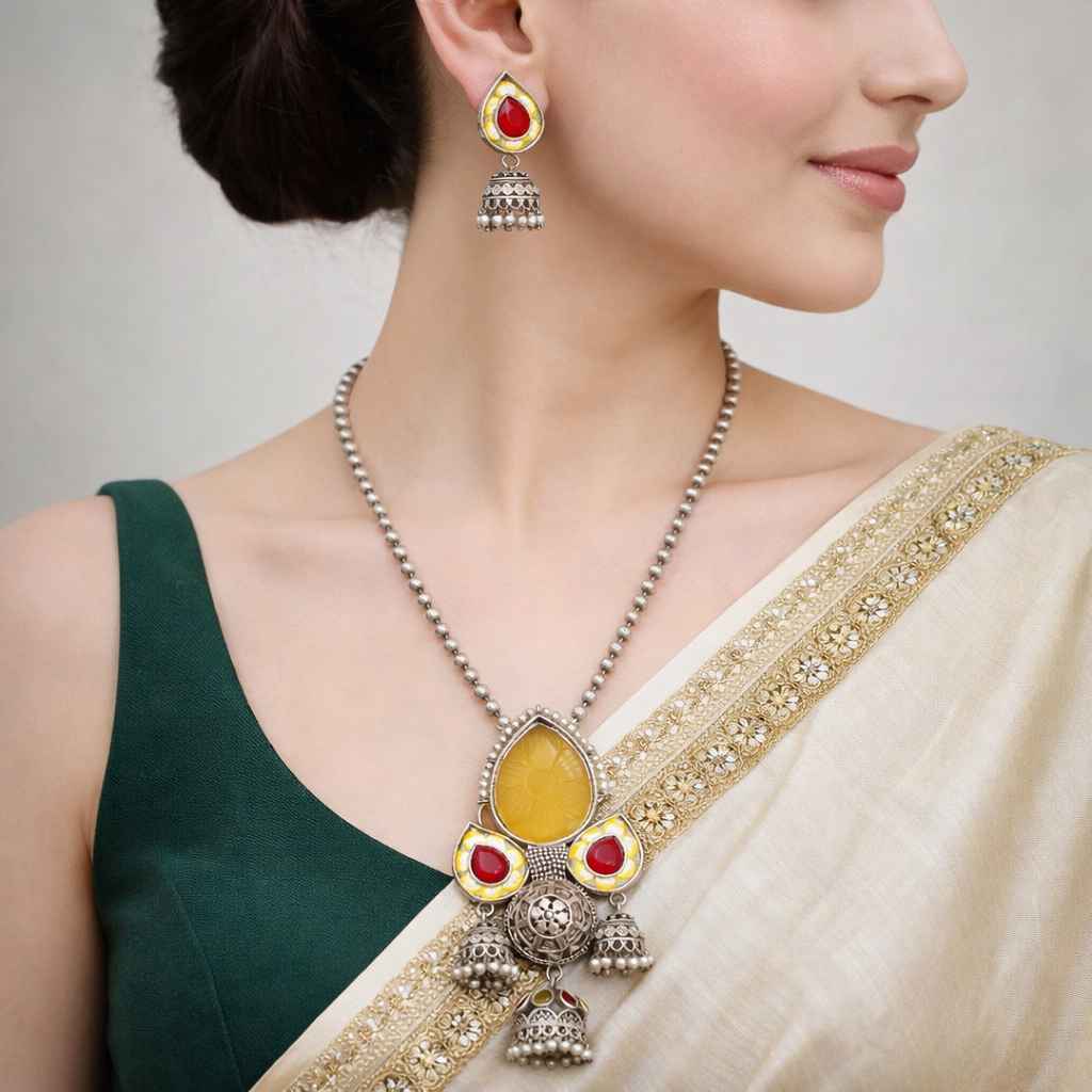 Timeless Avanshika Yellow Red Silver-Plated Necklace Set