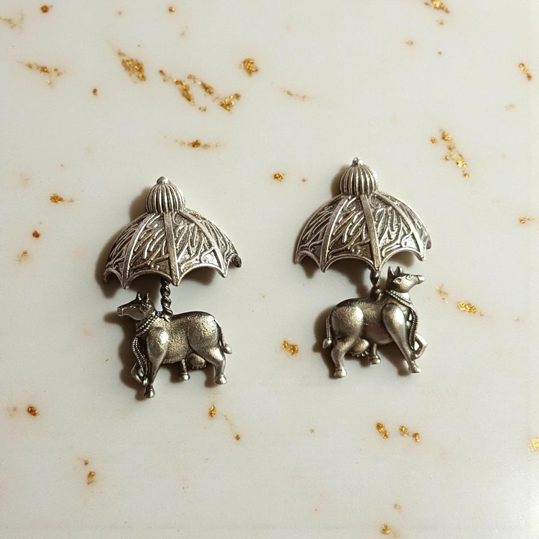 Elegant Antique Laksha Silver Plated Earrings
