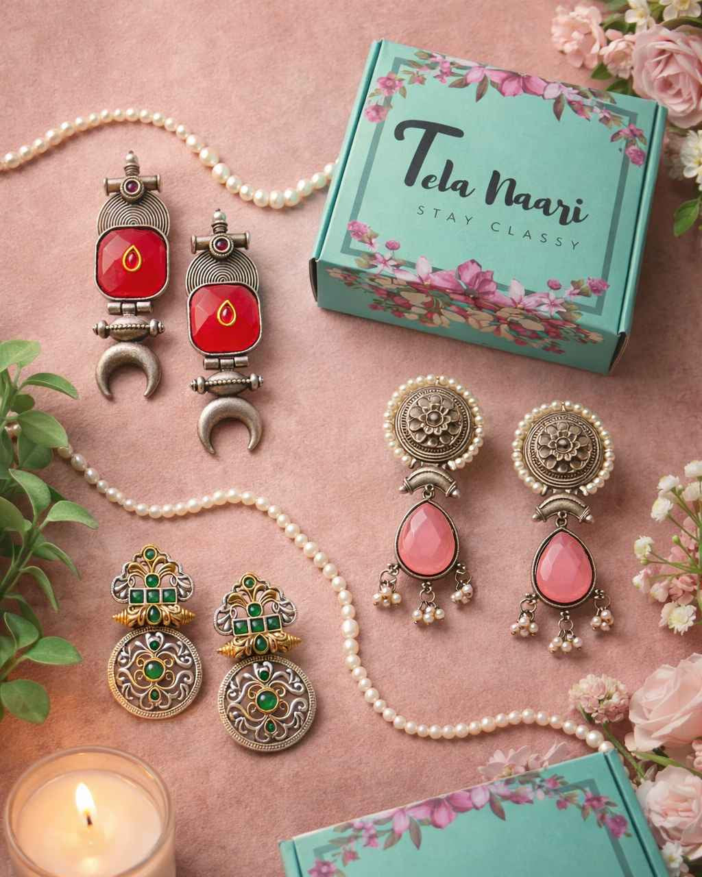 Celebrate life's golden moments with the Fern Festive Gift Hamper—a thoughtfully assembled collection of handcrafted jewelry that goes beyond the expected. Perfect for festival season, milestone achievements, or spontaneous celebrations, this curated selection delivers genuine artistry in every piece.
