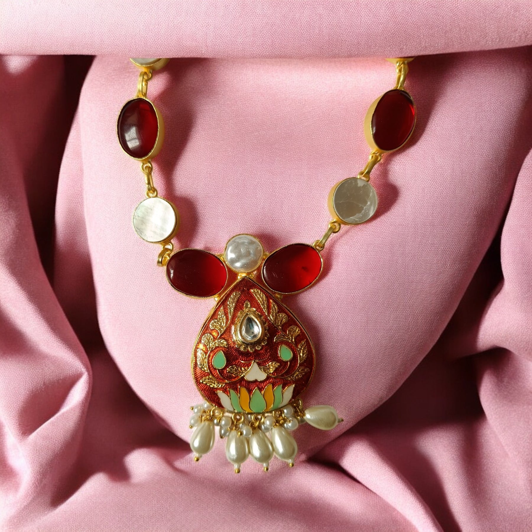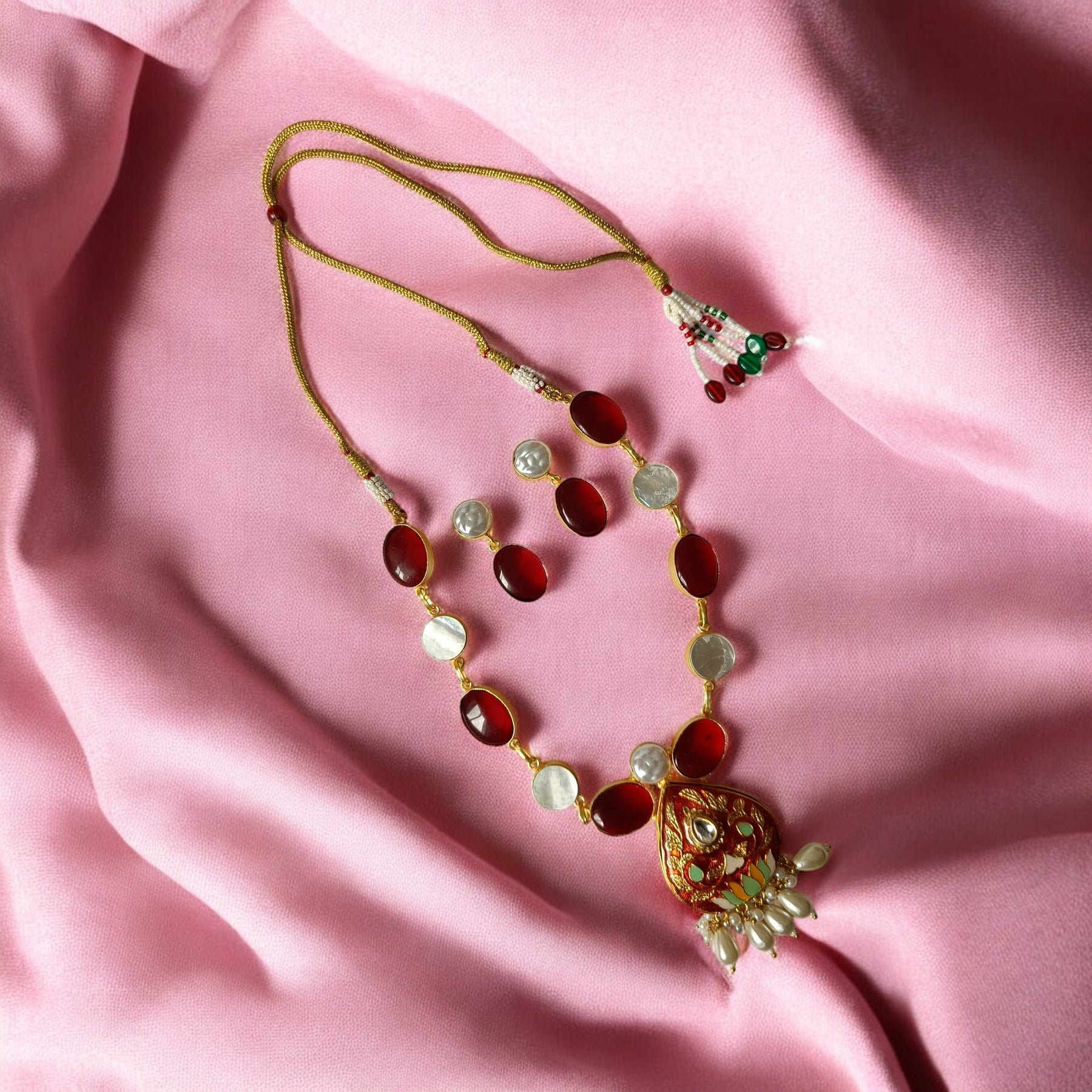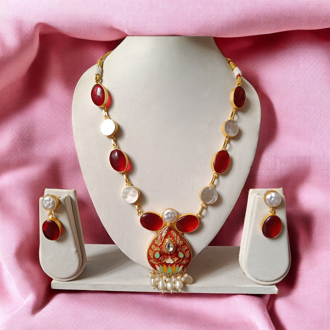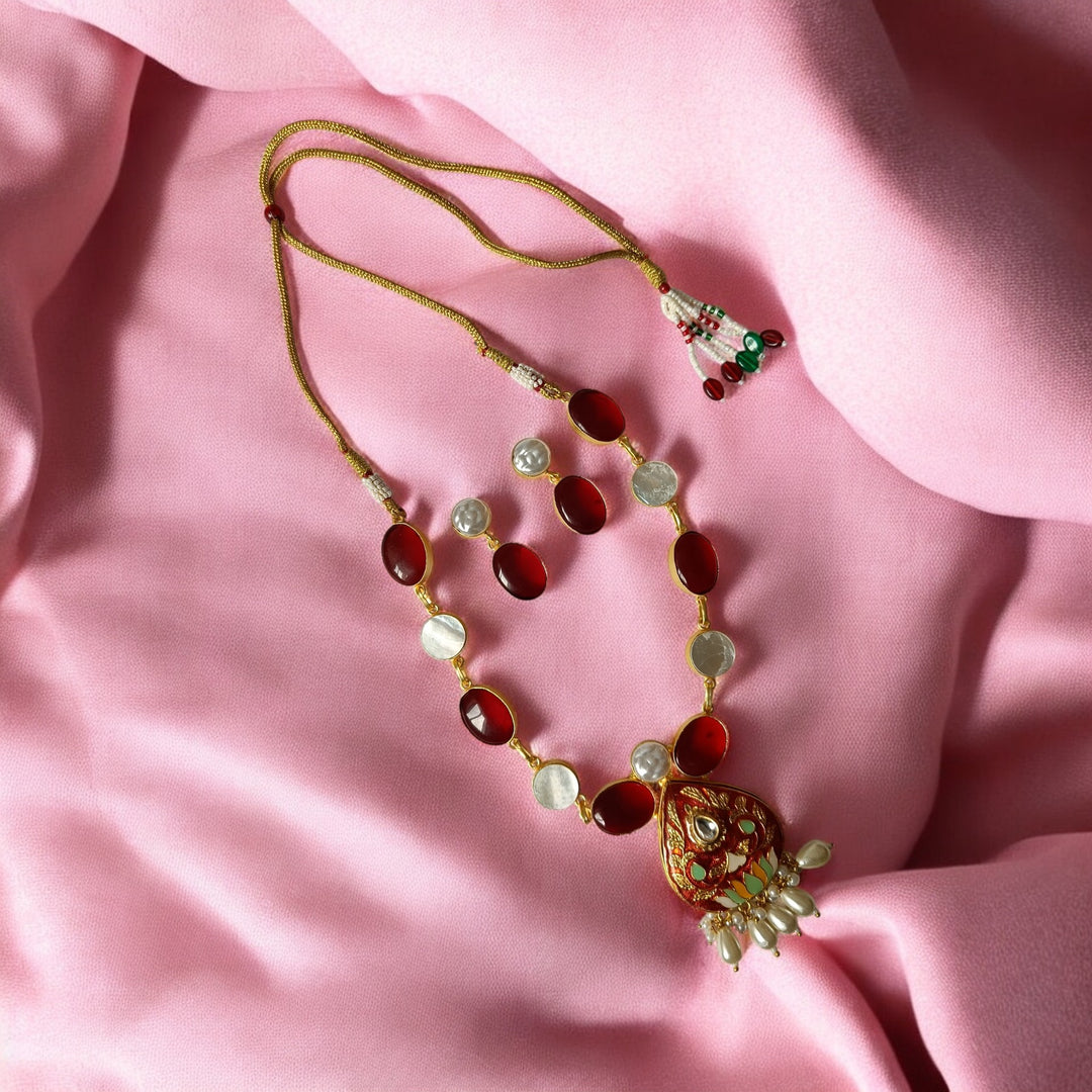 Telanaari Bhumi Baroque Red Gold Plated Necklace Set With Meenakari - TelaNaari